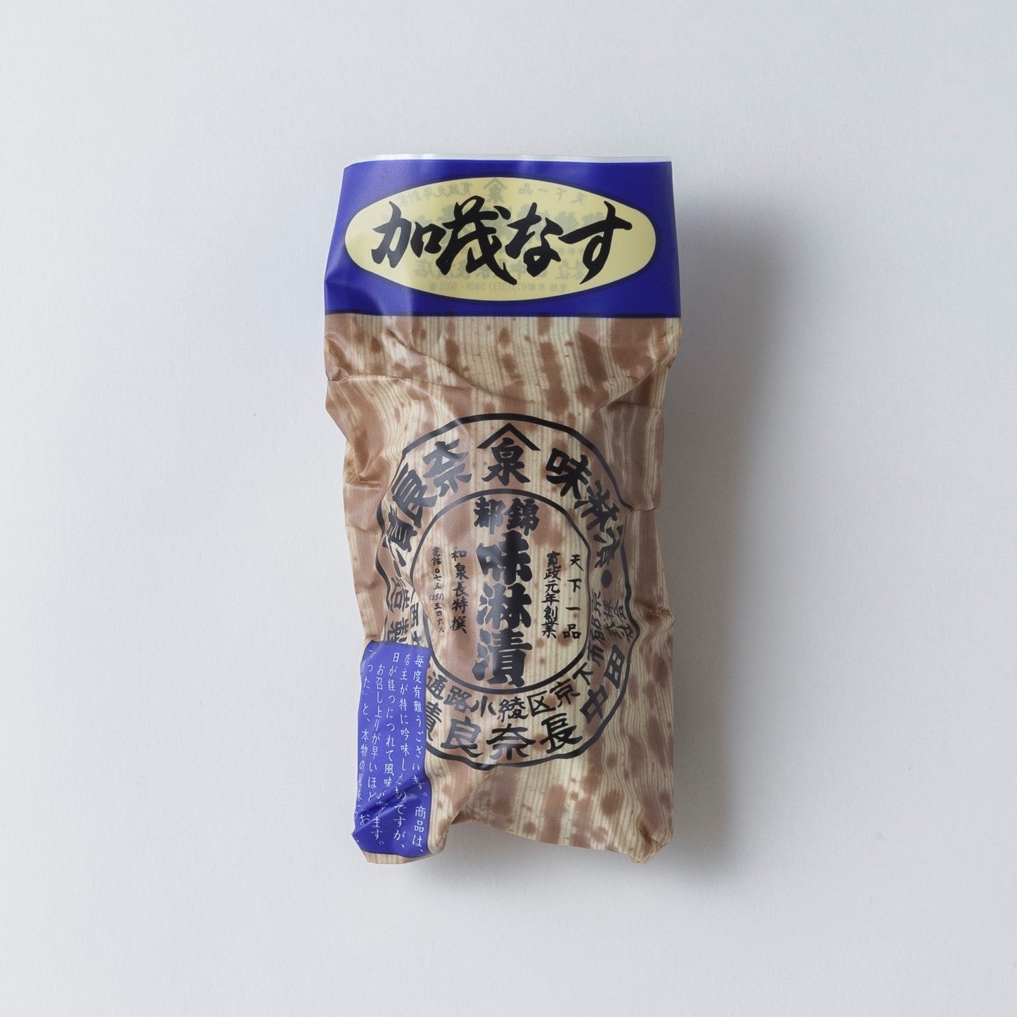 ジューシーで濃厚な仕上がりの京野菜「賀茂なす」の奈良漬です。ご飯のお供に最も適した自信作。京都のお土産にも良い商品です。