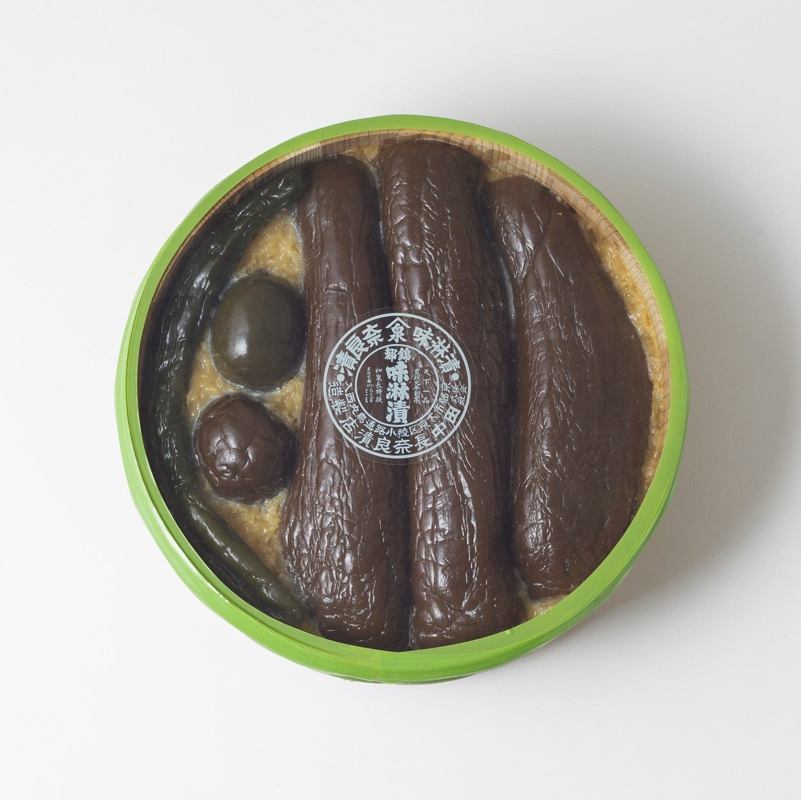 都錦味淋漬に漬上げた野菜を計量して木樽(寸法303x105x80mm)にお詰めしております。 本品は「うり」3本、「すいか」1玉、「きゅうり」1本、「なす」1個入りを標準にお造りしています。 ※自然の農作物を原料としている為、詰め合わせ内容が見本と異なる事がありますが、量目には相違ございません。