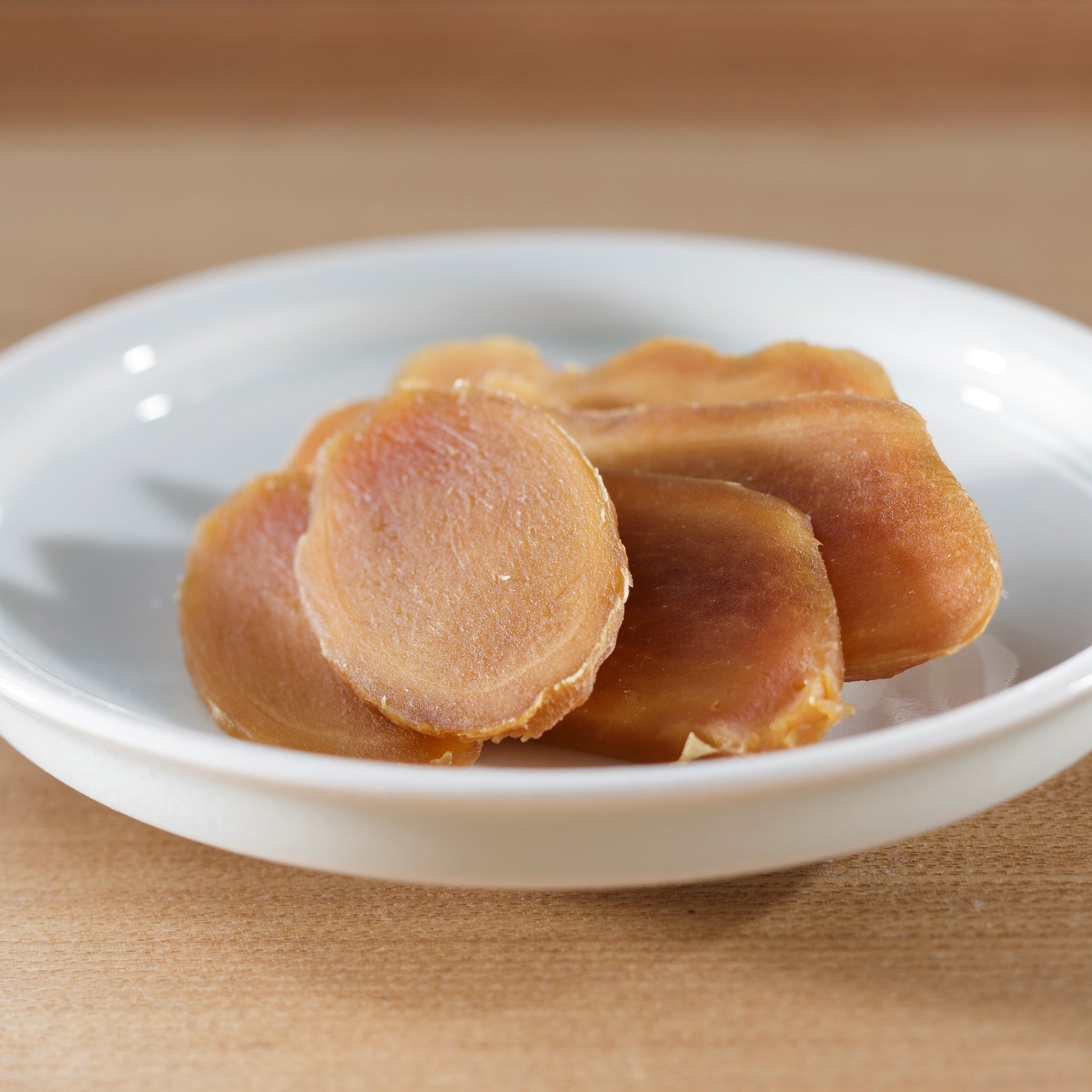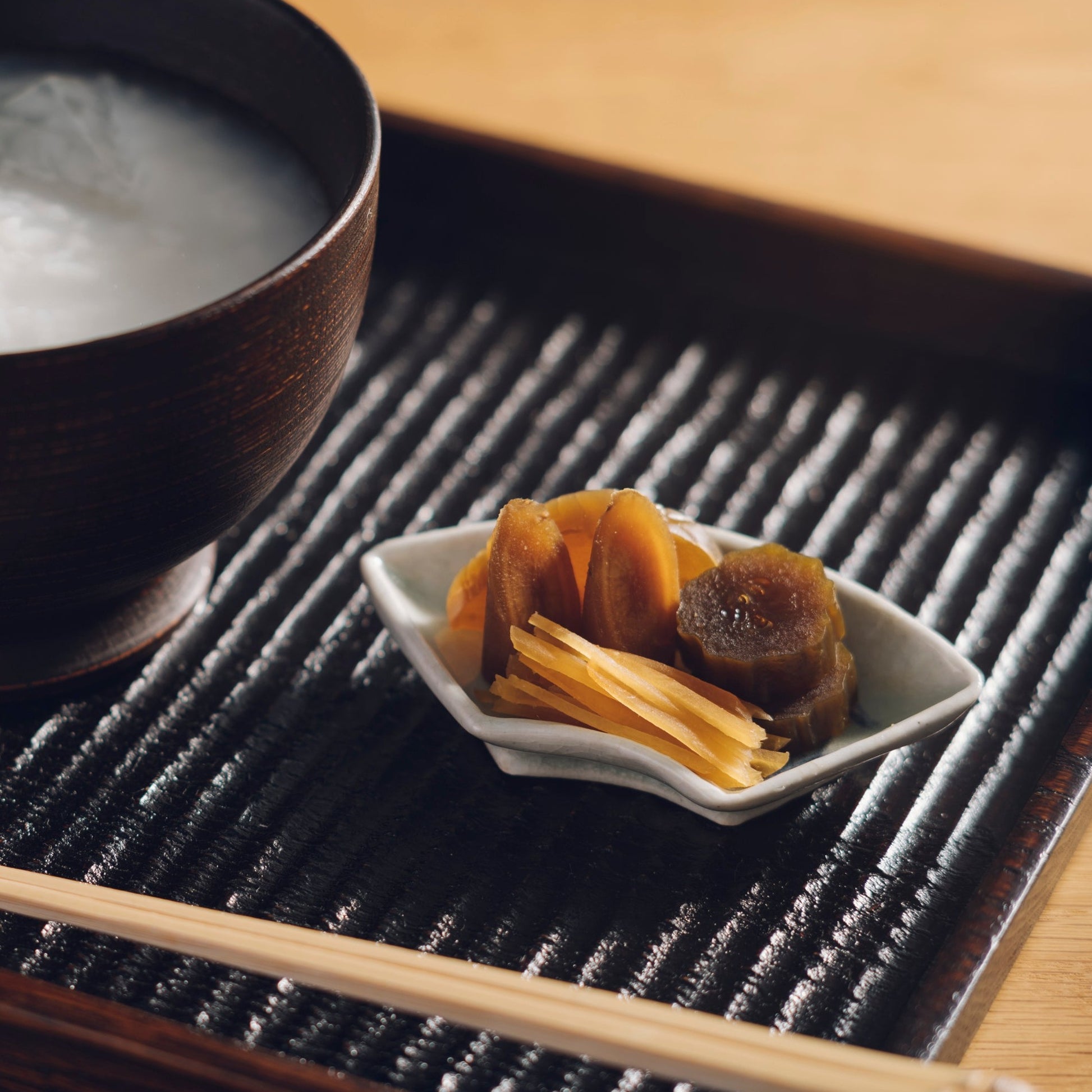 急速に糖分を入れるのではなく、じっくり時間をかければこそ、まろみのあるしょうがの味淋漬が完成するのです。これは我々職人にもできない時間のみがなせる技です。