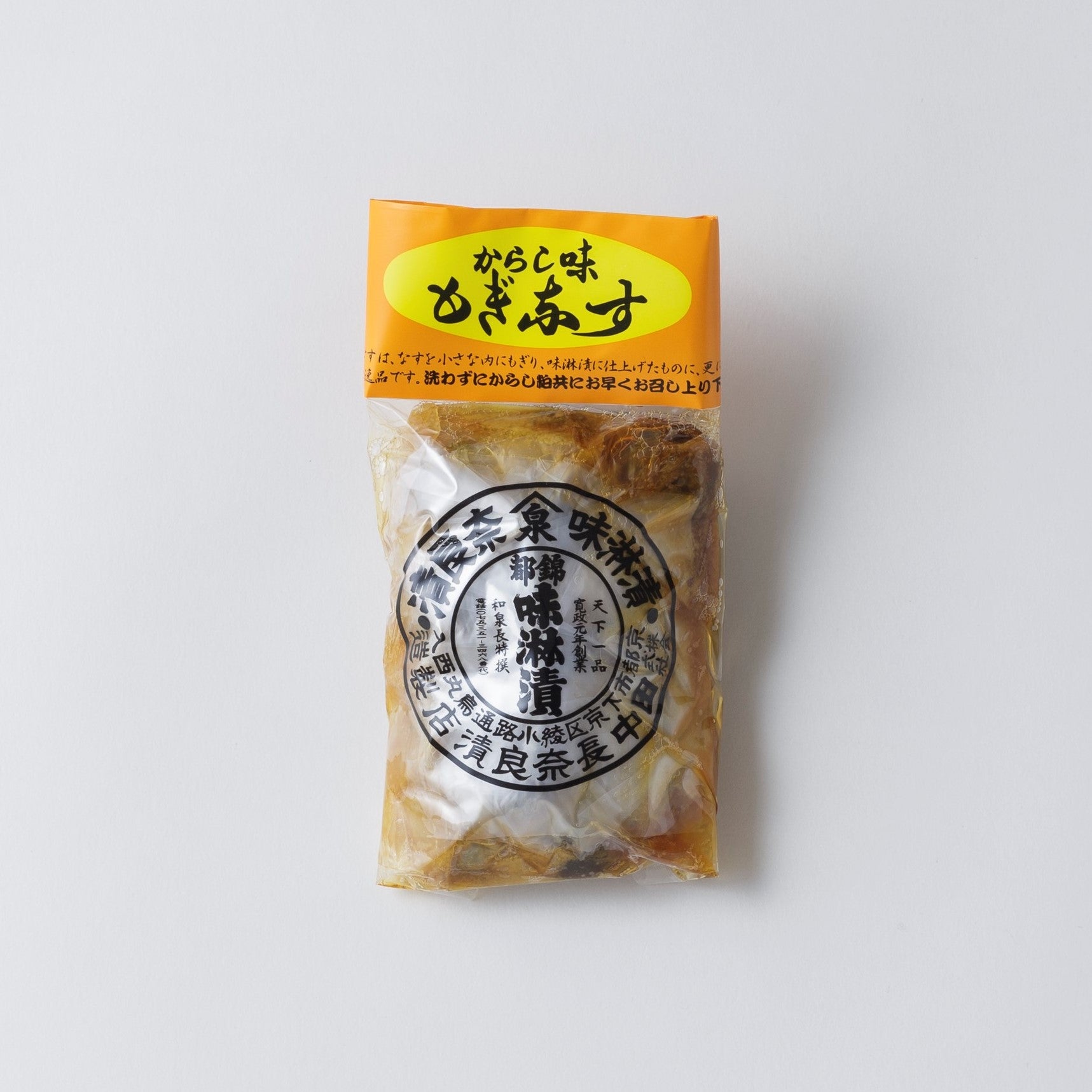 弊社のからし味はその名のとおり、「もぎなすの都錦味淋漬をからし味に仕上げたもの」です。いったん奈良漬として完成した「もぎなす」にさらにひと手間かけました。